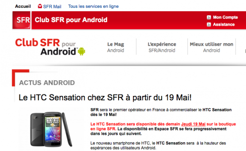 Il gestore Francese SFR ha comunicato che a partire da domani, 19 maggio 2011, sarà disponibile alla vendita il nuovo Htc Sensation!