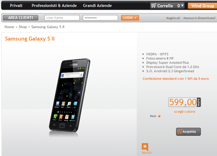 Ed ecco in vendita presso Marcopoloshop.it e presso Wind l’attesissimo Samsung Galaxy SII