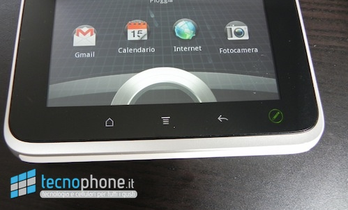 I tasti a sfioramento sono 3 e cambiano posizione se ruotiamo il tablet in orizzontale o verticale.