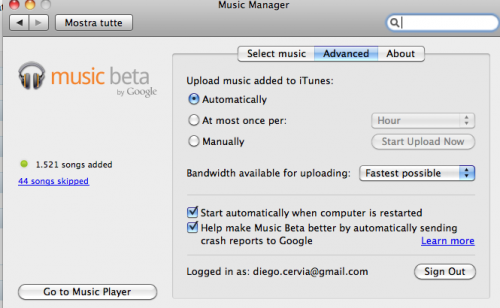 Ci verrà chiesto di scaricare ed installare il Music Manager, strumento utile a uploadare le canzoni nella nuvola