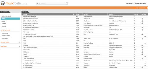 La nuovola di google permette di archiviare fino a 20.ooo brani online in modo da poterli ascoltare attraverso i dispositivi mobili o semplicemente con un browser web.