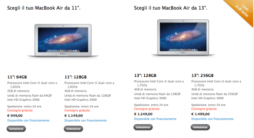 Si parte da 949 euro per il modello da 11 pollici con 64 GB di memoria, fino ad arrivare a 1499 euro per il modello da 13 pollici con 256 gb di memoria.