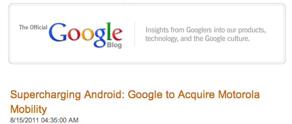Larry Page, fondatore di Google assieme a Sergey Brin, annuncia l’ acquisto della divisione mobile di Motorola con un articolo nel suo blog personale.
