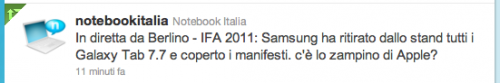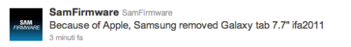 A quanto pare la scelta di rimuovere il Galaxy Tab 7.7 è dovuta alla querelle in corso con Apple.