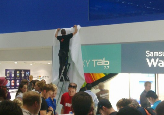 Samsung sta ritirando dallo stand tutti i Galaxy Tab 7.7, comprese le immagini, i banner e tutto il materiale riguardante il tablet.