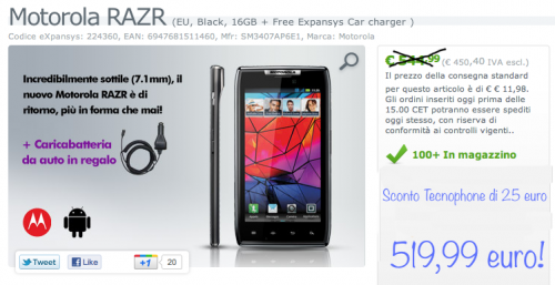 Grazie alla collaborazione con il negozio Expansys, ho disponibili 50 buoni sconto da 25 euro validi per l’ acquisto del Motoroloa RAZR.
