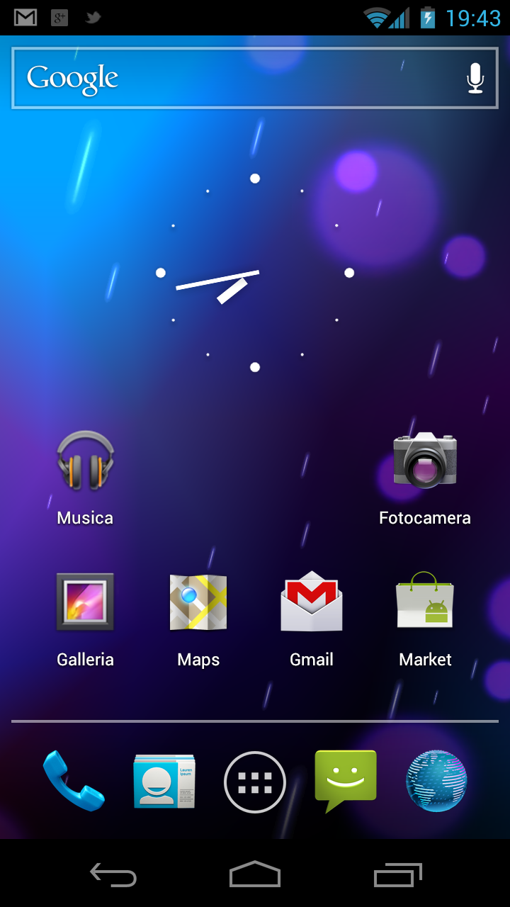 Una volta terminata la procedura, ecco il nostro Android 4.0 Ice Cream Sandwich.