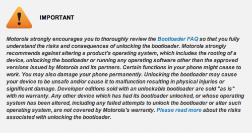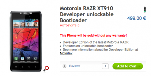 Il Motorola RAZR developer edition non avrà nessuna garanzia!
