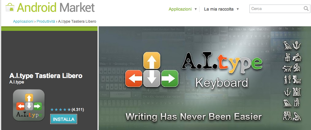 Provala nel market Android: A.I.type Keyboard Plus , A.I.type Keyboard Free