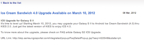Samsung ha comunicato che il rilascio di Android ICS 4.0 per il Galaxy S II arriverà il 10 Marzo 2012!