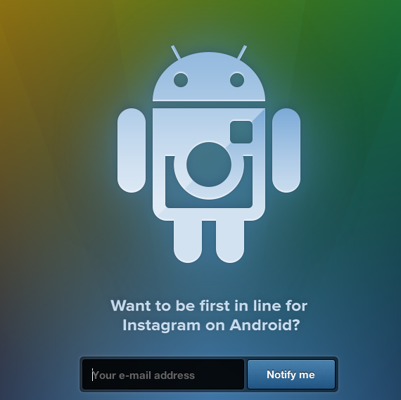 Da pochi giorni è on line la pagina ufficiale di Instagram per Android dove è possibile inserire la propria mail per ricevere la notifica della disponibilità su Play Store dell’ applicazione.