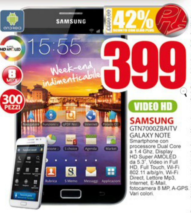 Un bel Samsung Galaxy Note a 399 euro non è male..