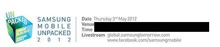 Giovedì 3 Maggio 2012 a Londra, ci sarà un evento Samsung Mobile Unpacked.