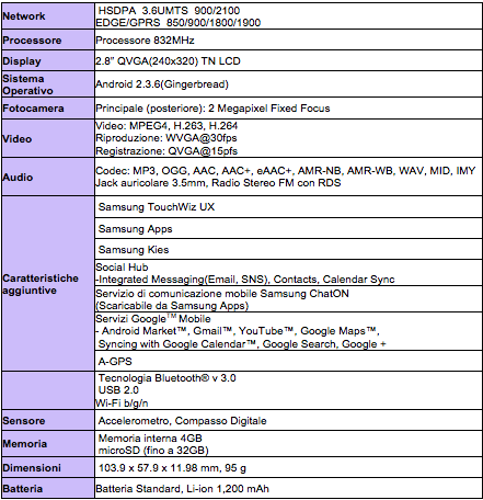 Il dispositivo dispone inoltre di una memoria interna di 4GB per contenere applicazioni, file MP3, foto e altri contenuti multimediali, così come una radio FM integrata, che permette agli utenti di ascoltare la stazione favorita. Connettività Wi-Fi ad alta velocità e HSDPA 3.6 offrono una navigazione Web immediata e un rapido download di contenuti multimediali.