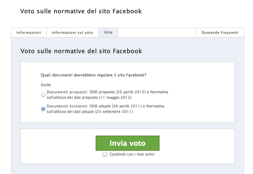 Facebook, il social network più utilizzato al mondo con oltre 900 milioni di utenti, sta proponendo un sondaggio.