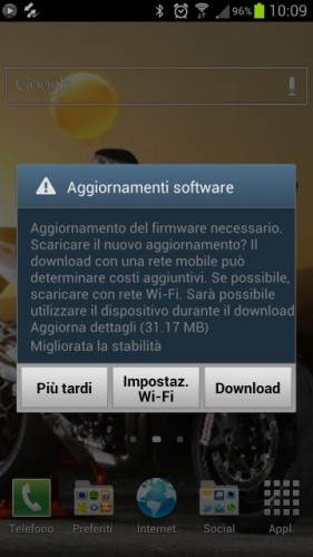 Nella giornata di ieri è stato rilasciato un primo aggiornamento ufficiale in UK per il nuovo Top di gamma Samaung, ovvero il Galaxy SIII! Oggi, a distanza di poche ore dal rilascio in UK, i primi utenti italiani stanno ricevendo la notifica via OTA dell’arrivo anche qui del primo update ufficiale, vediamo insieme uno screenshot: