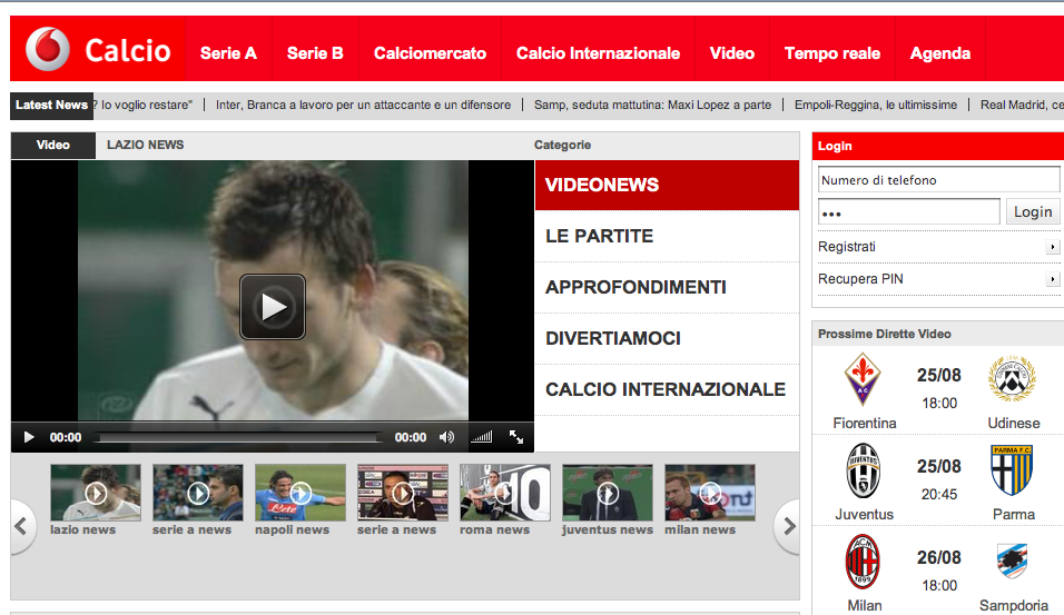 Al costo di 3 euro a settimana si potrà invece acquistare CalcioLive, abilitando la fruizione di tutti i contenuti video: dirette streaming in HD, video news, video goal e sintesi delle partite del campionato italiano e della Premier League inglese.
