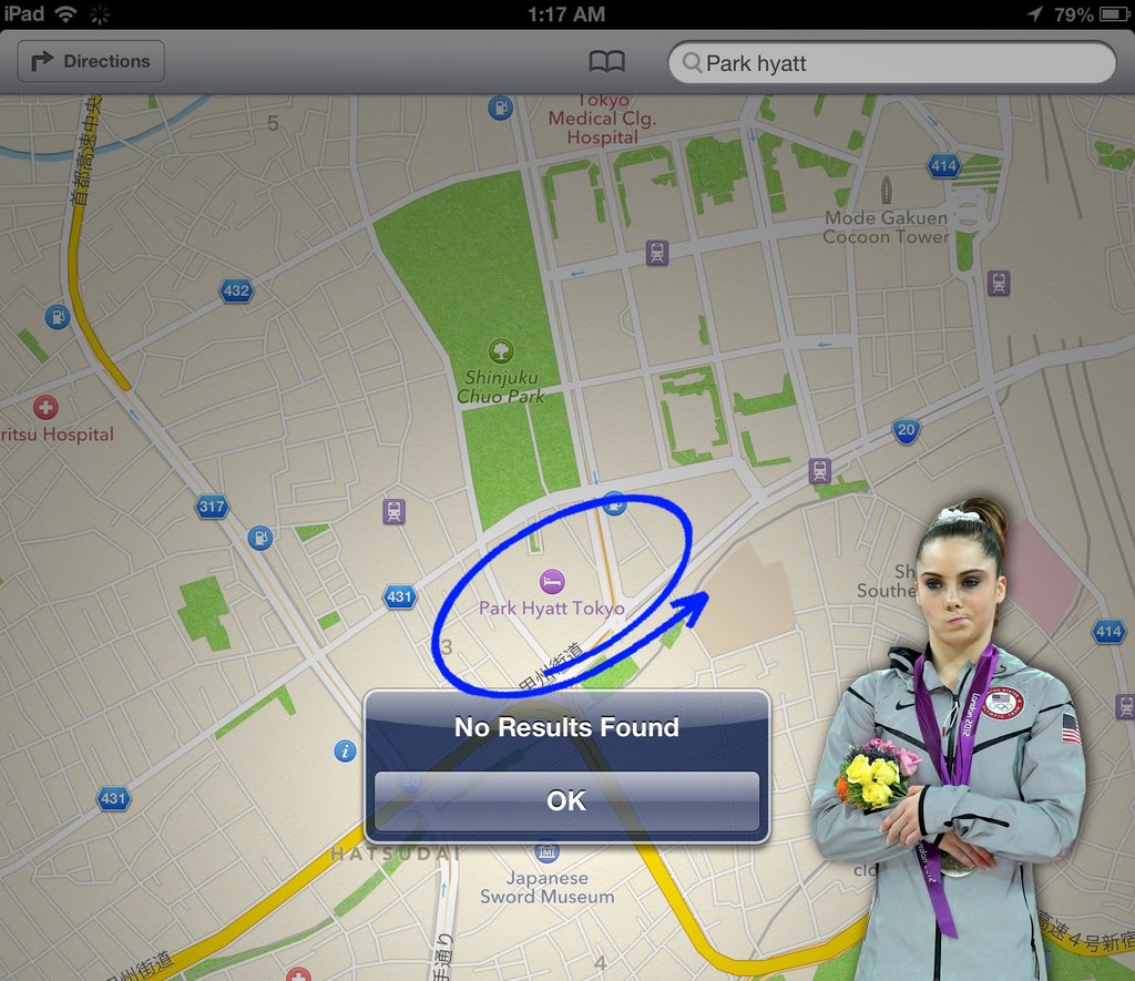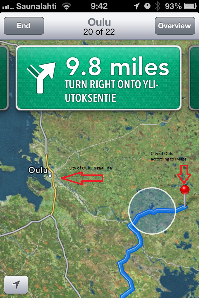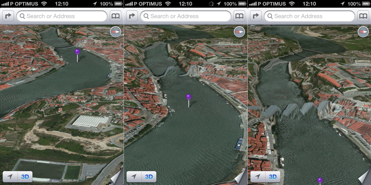 Come ormai tutti sanno ieri è stato rilasciato il nuovo sistema operativo iOS 6 per dispositivi mobili Apple. Tra le cose che hanno attratto più l’attenzione – anche il Corriere della Sera ha reputato importante dedicarvi un articolo – le nuove mappe. Abbandonata una volta per tutte Google, Apple ha infatti introdotto un sistema di mappatura proprietario, che però non sembra rispettare il motto “It just works”. Non solo manca la copertura per i servizi pubblici in molte città, ma contiene errori madornali: fattorie diventano aeroporti, nuvole incombono minacciose su innocenti cittadine e le distanze diventano relative.
