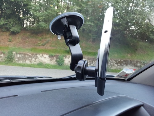 Il supporto è dotato di una potente ventosa con un sistema di chiusura che ne assicura la perfetta adesione al parabrezza.