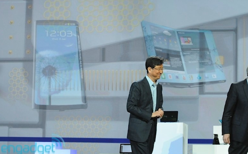 Samsung durante una conferenza stampa al CES 2013 ha lasciato tutti i presenti con la bocca aperta mostrando un prototipo di smartphone con il display OLED flessibile!