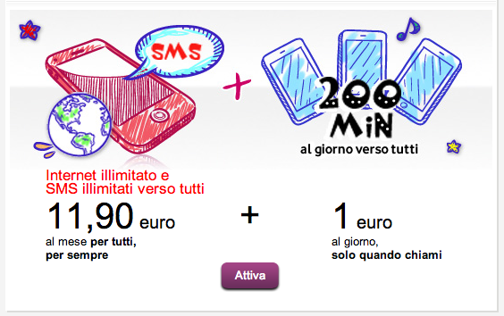 Nel 2013 e ancora mancanuna flat vera? Ma che roba ridicola…specialmente lo specchietto per allodole dell’ “illimitato”! Che compagnie telefoniche da uganda (a no forse li vanno gia meglio di noi)