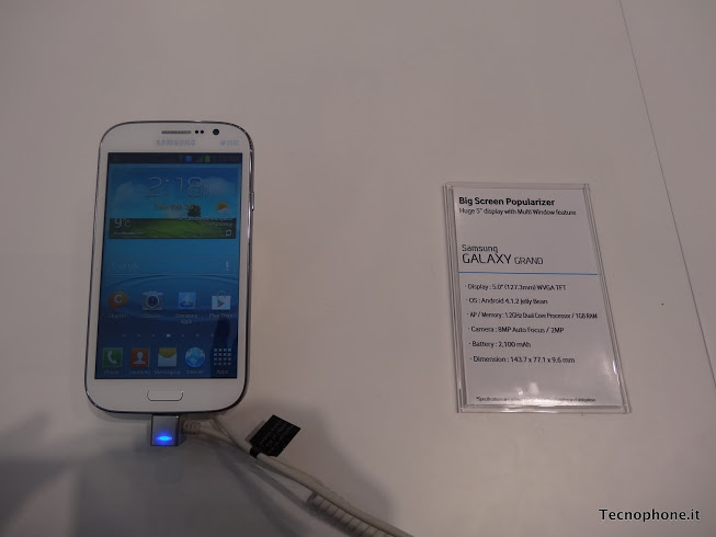 Passiamo ora al Samsung Galaxy Grand dispositivo disponibile in due versioni: Mono o Dual-Sim. Il dispositivo offre caratteristiche molto interessanti come una fotocamera da 8mpx ed un display da 5″ che pultroppo si ferma ad una risoluzione di 800×480. Conosciamolo meglio grazie alla nostra video anteprima: