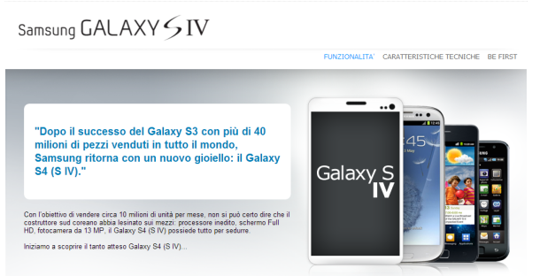 Avete letto bene il titolo, stamani il noto sito Expansys ha pubblicatoi una pagina dedicata al nuovo Samsung Galaxy SIV dove vengono menzionate anche alcune caratteristiche tecniche del terminale, vediamo il tutto di seguito: