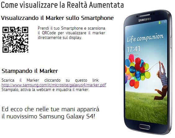 Ho ricevuto una mail da parte si Samsung che mi invitava a provare il nuovo Galaxy S4 attraverso la realtà aumentata ed io, da buon Tecnophoniano, subito mi sono precipitato per capire di cosa si tratta, vediamolo insieme dopo il salto: