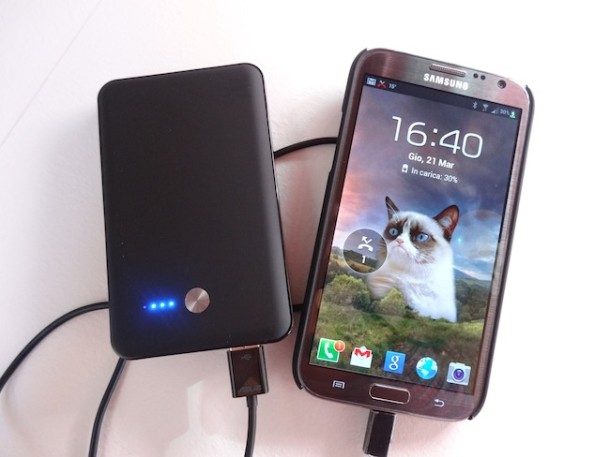 Ho fatto alcune prove e sono risucito a ricaricare due volte il Galaxy Note II. ( Ho utilizzato un cavo USB e non quelli in dotazione perchè il Note II non me lo riconosceva)
