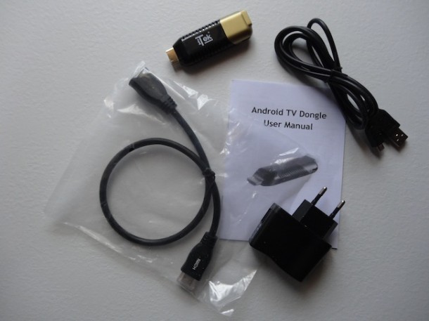 Nella confezione troviamo la “stick”, una prolunga HDMI, un cavo micro SD e un alimentatore.