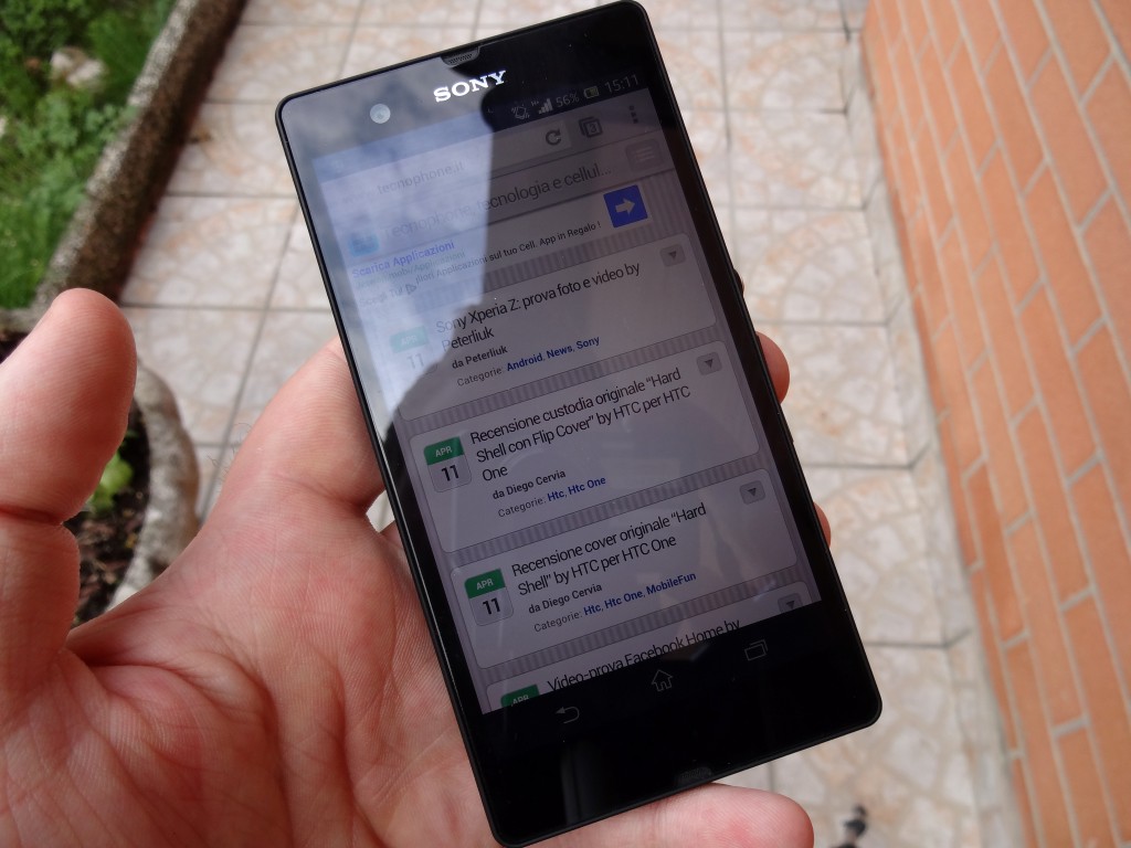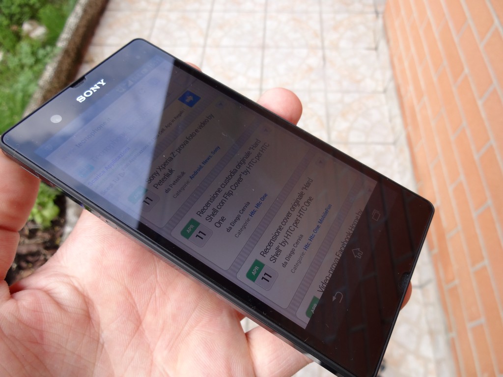 Sono rimasto piacevolmente sorpreso dalla visibilità del display TFT di Xperia Z al sole con il quale non ho mai avuto alcun tipo di problema di “non visibilità” passatemi il termine.