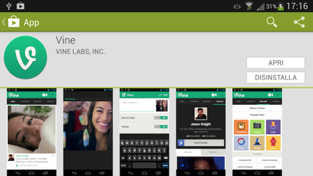 Vine, l’ innovativo sistema di mini video di 6 secondi (tipo Gif in loop) lanciato da twitter è approdato sui terminali Android.