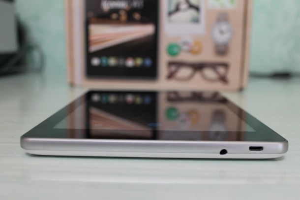 La confezione comprende il Tablet (ovviamente), cavo USB micro USB per la ricarica della batteria e la sincronizzazione con il PC, manuali vari ed adattatore da parete per la ricarica.