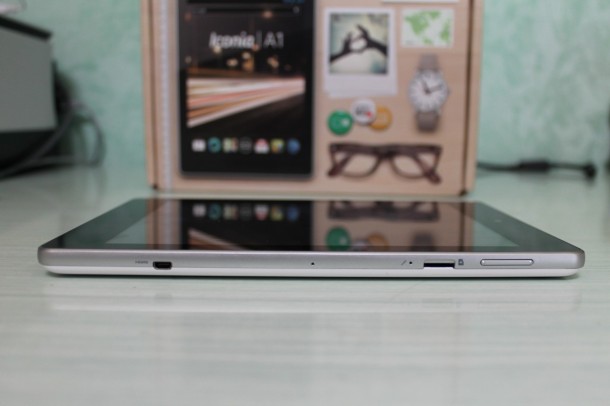 Nel lato sinistro troviamo il bilanciere del volume, l’entrata per la micro SD, i due microfoni (uno per la riduzione dei fruscii) ed una porta micro HDMI