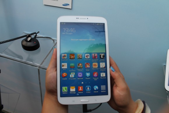 Passiamo al modello medio della famiglia Galaxy Tab 3, il modello 8.0 che come si capisce dal nome ha un display da 8 pollici. Vi anticipo che questo è il modello che mi ha piu’ colpito dell’intera famiglia: