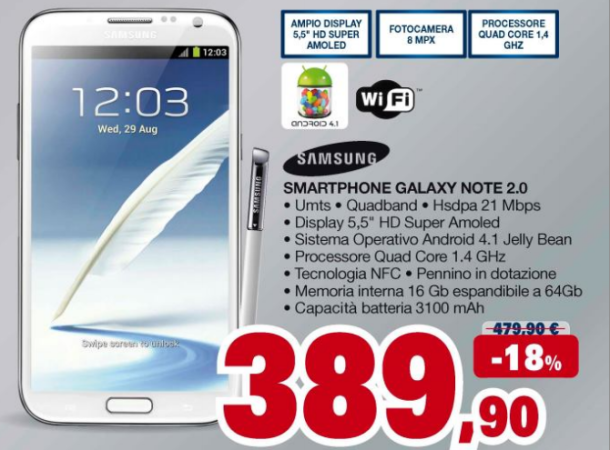 Samsung Galaxy Note II a 389 euro