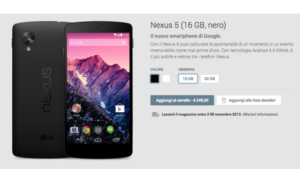 Google Nexus 5 è disponibile all’ acquisto direttamente nel Play Store.