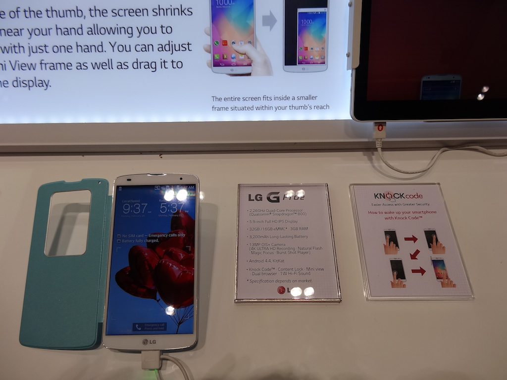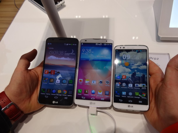Allo stand era possibile provare il nuovo G Flex, i tre dispositivi L 40, L70, L90 della serie L di terza generazione, il G Pro 2 e il G2 Mini.