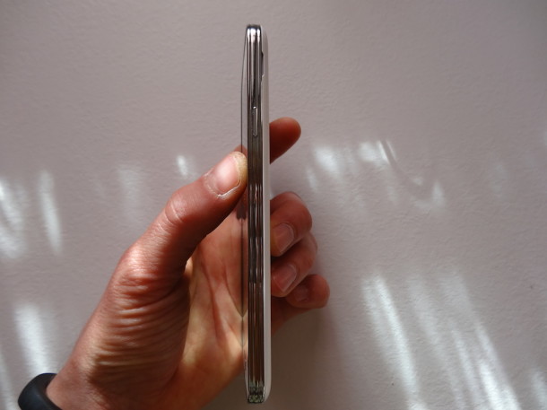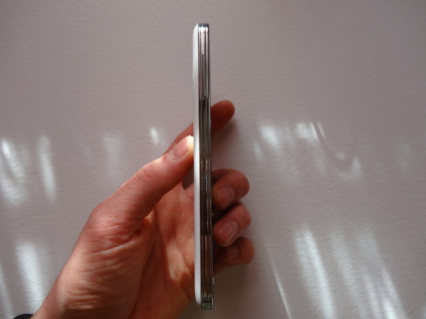 Rispetto al Galaxy S4 le dimensioni sono leggermente aumentate. Lo spessore passa da 7,9 a 8,1 mm e il peso da 130 a 145 grammi.
