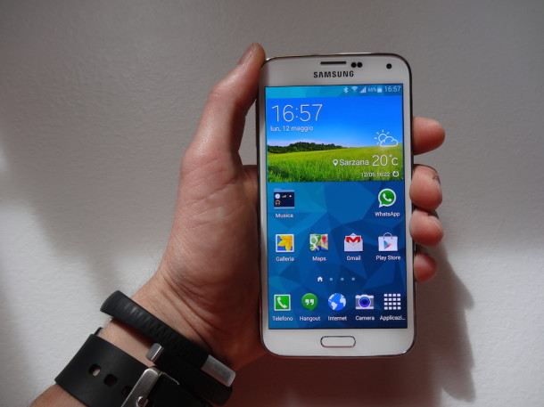 Rispetto al Galaxy S4 le dimensioni, il peso e lo spessore sono aumentate leggermente, questo però non penalizza l’impugnatura del dispositivo, che secondo me è addirittura migliorata.