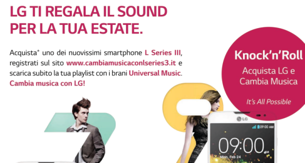 A partire dal 17 giugno e fino al 17 agosto 2014 infatti, con l’acquisto di uno smartphone della Serie L III*, sarà possibile scaricare gratuitamente una playlist composta da dieci brani Universal Music oppure l’utente potrà comporne una propria, selezionando dieci brani tra quelli disponibili sul sito dedicato.