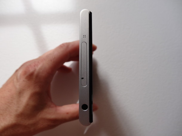 Xiaomi Mi3 è un dispositivo solido e compatto. La scocca è in alluminio ricoperto di grafite e sorprende per quanto sia piacevole al tatto e resistente. Il design del Mi3 è particolare e sicuramente non piacerà a tutti. Io lo trovo molto elegante e soprattutto originale. Lo spessore è di 8,1 mm.