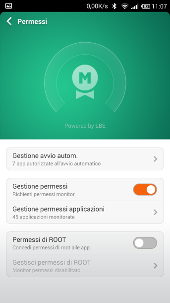 Nella sezione sicurezza possiamo scegliere inoltre quale applicazione può avviarsi all’accensione ed è possibile abilitare o disabilitare il ROOT con un semplice tasto.