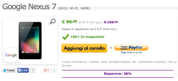 Asus Nexus 7 2012, Il primo tablet Nexus, è in offerta al prezzo interessante di 99 euro.
