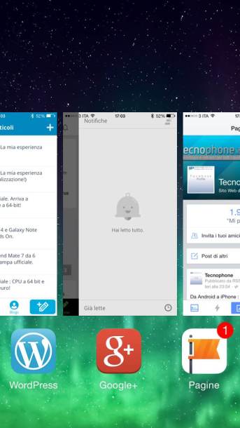 Alla pressione del tasto home le applicazioni rimangono aperte e continuano a funzionare anche se non le stiamo utilizzando. Tutte le applicazioni aperte vengono mantenute nella RAM e potete immaginare a fine giornata a che punto sia la memoria RAM libera.