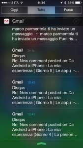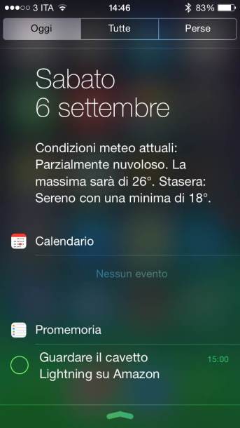 Su iOS7 il funzionamento è molto simile. Si richiama passando il dito dall’alto verso il basso e ci mostra 3 tab.