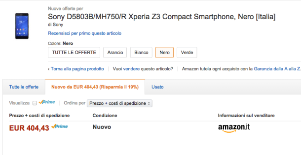 Il link è questo http://www.amazon.it/gp/offer-listing/B00NMEHHXE/ref=sr_1_3_olp?ie=UTF8&qid=1411230597&sr=8-3&keywords=Sony+xperia+z3+compact&condition=new