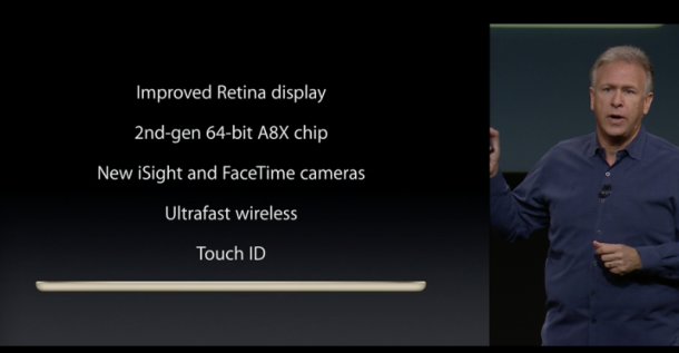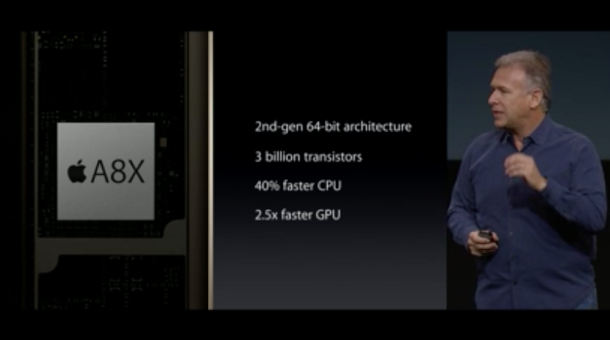 Il processore è il nuovo Apple A8X, creato appositamente per i nuovi iPad. La CPU è 12 volte più veloce del primo iPad.