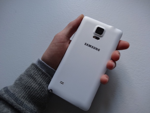 Note 4 in mano è solido ed elegante. La cover posteriore in plastica aderisce perfettamente alla scocca e non ci sono scricchiolii.