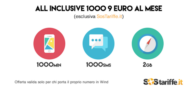 Wind, in collaborazione con il portale SosTariffe.it ha lanciato una interessante offerta MNP (portabilità) che prevede 1000 minuti di chiamate, 1000 messaggi, e 2 GB di Internet a soli 9 euro al mese.
